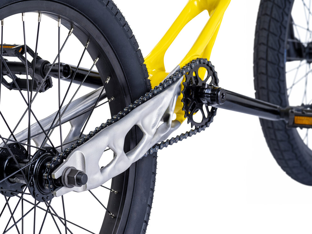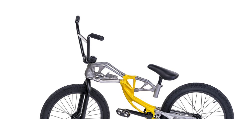 Als Ausdruck unserer technischen Möglichkeiten haben wir zur Formnext 2019 ein Fahrrad mit additiv gefertigtem Aluminiumrahmen auf die Räder gestellt. Ziel war es einen topologieoptimierten Fahrradrahmen zu entwickeln, mit einem optimalen Verhältnis aus Gewicht und Steifigkeit. Der additive Aufbau aus vier Elementen wurde im Nachgang der Messe als eine der Top 5 3D-Druck Anwendungen auf der Formnext ausgezeichnet.