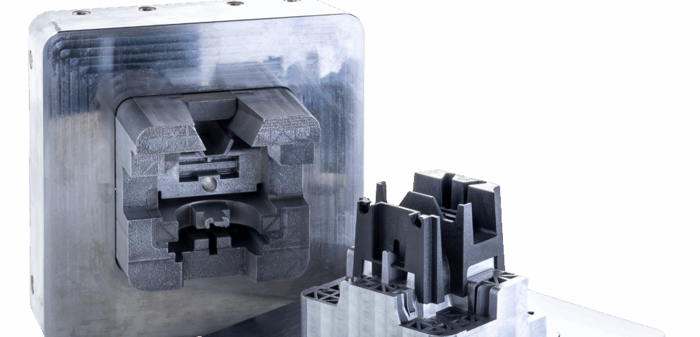 Additive moulding refers to 3D printed mould inserts made of aluminium or steel for the fast and cost-effective realisation of injection moulded prototypes. This process also allows near-contour tempering directly in the insert. The output quantity is at the same level as in conventional production, since additively constructed metal parts have at least equivalent or even better strength properties than the corresponding alloy as a semi-finished product.